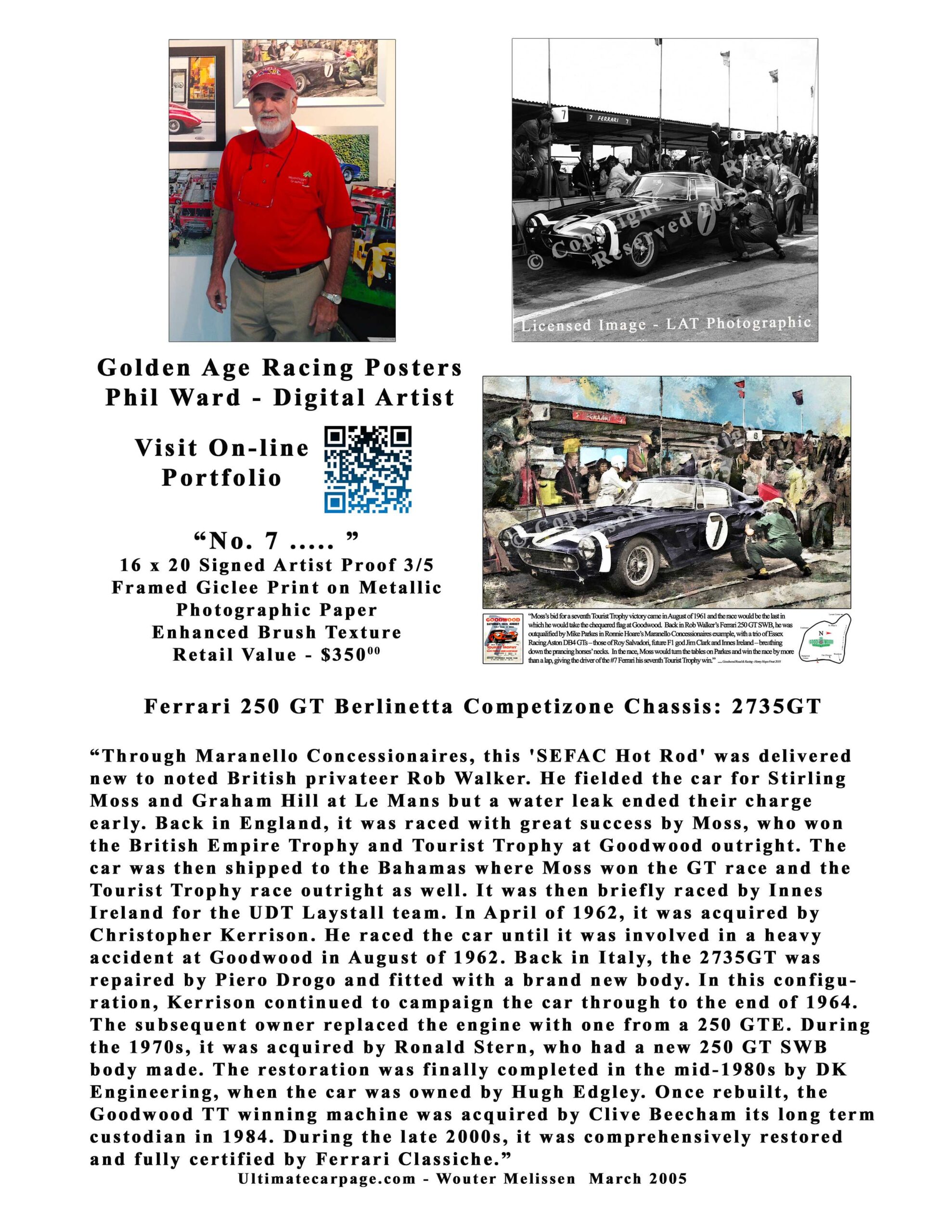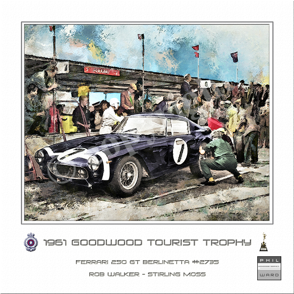 Enter to win this beautiful digital print of Rob Walkers famous Ferrari 250GT SWB being depicted at Goodwood. Created by the brilliant artist Phil Ward at Golden Age Racing Posters. This beautiful print comes framed and signed by the artist Phil Ward. With a retail value of $350 this is a fantastic addition to any historic racing enthusiasts art collection and would look stunning hanging on your wall.
